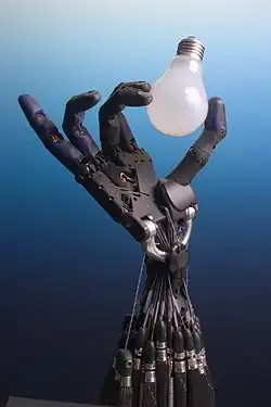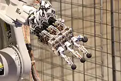 Some advanced robots are beginning to use fully humanoid hands, like the Shadow Hand, MANUS,[47] and the Schunk hand.[48] They have powerful Robot Dexterity Intelligence (RDI), with as many as 20 degrees of freedom and hundreds of tactile sensors.[49]