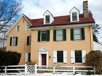 This historic structure consists of three sections. The oldest section was built in 1819, on the foundations of an earlier log structure that dates to circa 1805. It was built using green serpentine ashlar and was coated in stucco. The dining room wing was added between 1821 and 1822, when the house was used as a tavern. The third wing is the kitchen wing, with later service room additions.
