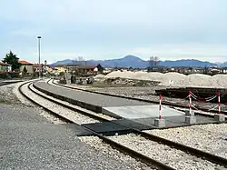 The Milan–Venice railway and Bergamo–Brescia railway pass just south of the station, calling at the main Rovato station.