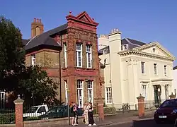 The (red-brick) Annex on the left and the original (cream-coloured) Dispensary on the right | |