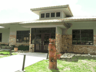 In 1997 the current library was designed and built by ASA Architectures, the two-story building with vaulted windows is 14,600 square feet. The library has a garden, the Friends’ Book Shoppe, an outdoor reading patio and available window seats. In addition, the library also includes an archive room, conference room, children’s, and teen's library, two self-checkout machines and twenty-nine computers for public use. The collection consists of books, CDs, DVDs, and an e-branch with access to e-books, audio books and magazines.[27] Some of the programs offered at the Ruidoso Public Library are children’s section, adult game night, teen scene, Ruidoso writers publishing group and a bereavement support group. Also, the library offers the New Mexico FamilyPass which provides free admission to fifteen museums and historical sites across the state.[28] The library is open Monday-Saturday.[29]