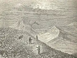 The North East Greenland coast was colonized by Palaeo- and Neo-Eskimo groups in the past. The Inuit and their ancestors colonized and abandoned the area at least four times during the last four thousand years.[4] There are remains of Inuit dwellings in Sabine Island that were first reported by Carl Koldewey during the Second German North Polar Expedition 1869–70.