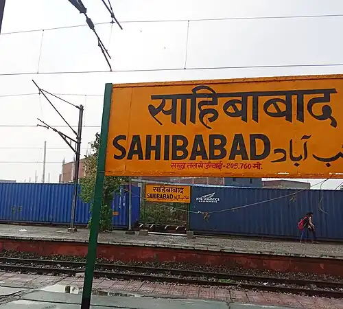 Sahibabad Junction railway station is a railway station in Ghaziabad district, Uttar Pradesh, India. Its code is SBB. It serves Sahibabad city. The station has five platforms.[1]