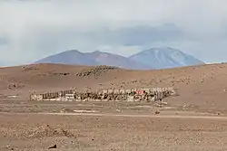 Salar de Ascotán, also known as Salar de Cebollar, is a salt flat in northern Chile. Its drainage basin is 1,455 square kilometers (562 sq mi) and is shared with Bolivia.[1] The basin is bordered on the north by the Salar de Carcote basin, on the east by small endorheic basins, including those of Laguna Cañapa and Laguna Hedionda, from which it is separated by the crest of the Cerros de Cañapa, Cerro Araral and others. To the south, the basin is bordered by the San Pedro de Inacaliri River basin, while to the west the drainage divide between the salt flat and the Upper Loa River basin is marked by the summits of a chain of volcanoes culminating in Palpana.