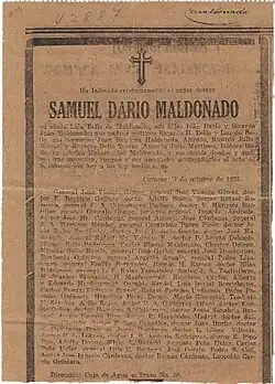 - ^ admin (October 6, 2020). "Efeméride 11: Fallecimiento Samuel Darío Maldonado – Familia Maldonado". Retrieved June 11, 2023.