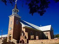 It is a cruciform-plan church, located about 2.5 miles (4.0 km) north of the ruins of the Pecos Pueblo ruins.[2]
