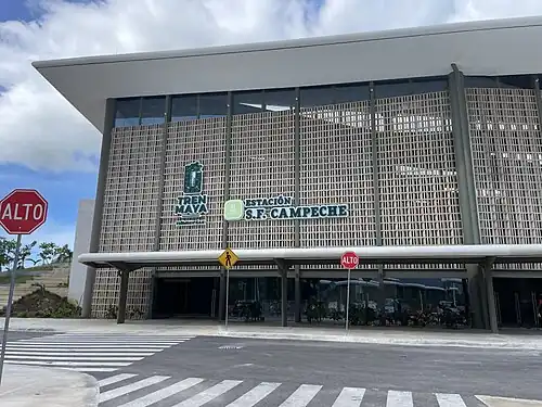 San Francisco de Campeche is a railroad station near San Francisco de Campeche, the capital of the Free and Sovereign State of Campeche. The route of the Tren Maya includes a 235 km (146 mi) section extending from Escárcega to Calkiní, and this section includes a station in San Francisco de Campeche.[4]