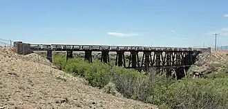 - ^ Joseph Gallegos; Chris Geddes (August 26, 2003). "National Register of Historic Places Registration: San Luis Southern Railway Trestle / Rattlesnake Trestle; 5CT.398". National Park Service. Retrieved January 16, 2020. With accompanying six photos from 2003