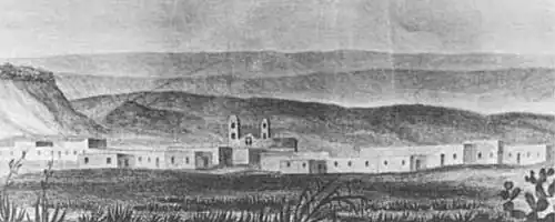 San Miguel del Vado is about 35 kilometres (22 mi) downstream from the Pecos Pueblo, the easternmost settlement of the Pueblo Indians in the 16th century when Spanish explorers first visited the area. Spanish settlements in New Mexico, dating from as early as 1598, were located near the Rio Grande.[1] Spanish expansion was hindered by constant warfare with the surrounding Comanche, Apache, Navajo, and Ute Indians. In the 1780s the Spanish made peace with the Comanche, who thereafter aided them against the Apache, reducing, but not eliminating, the threat to the Spanish settlements and making it possible for the Spanish to expand eastward toward the Great Plains.[2]