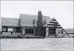 In the early years, Santa Claus presented a popular attraction and featured a U.S. post office and Christmas related buildings.[5] Cinderella's Doll House was one of the buildings, designed to have the look of a Swiss chalet.[9] Children could visit a real Santa Claus in the town at any time of the year.[5] The post office was widely used in December by kids sending letters to the town addressed to Santa and by adults wanting their letters postmarked from "Santa Claus."[5] The Kit Carson Guest House became part of Santa Claus and was named the Santa Claus Inn.[2] The Santa Claus Inn served "a big farm breakfast" for $.75 in an air-conditioned restaurant and offered menu items such as Chicken à la North Pole and Rum Pie à la Kris Kringle.[2] The restaurant became famed for its rum pie.[9] The "French Room" part of the restaurant was highlighted in now vintage postcards and a photo of Santa Claus himself was placed over the restaurant's fireplace.[9] By 1942, the town of Santa Claus had become a full-fledged tourist spot.[9]