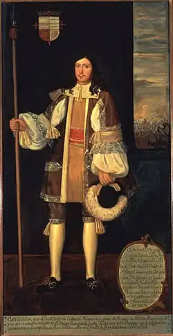 The nearby, and unsuccessful, Spanish colony at San Gabriel established by the explorer Juan de Oñate at Ohkay Owingeh in 1598 produced Spanish haciendas and ranchos in the vicinity. During the Pueblo Revolt of 1680, Hispanic settlers were forced to leave the area. In 1695, following the Reconquest of 1692-1694 and the second Pueblo Revolt in 1696, Governor and Captain General of New Mexico, Don Diego de Vargas reestablished the Hispanic settlement. It was established as a new Spanish villa for those that had arrived from Mexico City as settlers and participants in the military campaigns during the reconquest. It was named Villa Nueva de Santa Cruz de los Españoles Mejicanos del Rey Nuestro Señor Carlos Segundo (The New Town of the Holy Cross of Mexican Spaniards under the King Our Lord Charles II). It later shortened simply to Santa Cruz de la Cañada (la Cañada translates as "a small river or creek valley").