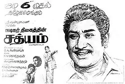 Satyam (transl. The Truth) is a 1976 Indian Tamil-language film, directed by S. A. Kannan and written by Vietnam Veedu Sundaram. The film stars Sivaji Ganesan, Kamal Haasan, Manjula, Devika and Jayachitra. The film has Haasan playing the younger brother of Ganesan.[1][2] It was adapted from Kannan's play Vidhi.