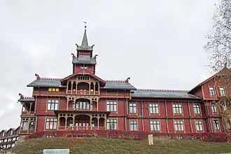 Scandic Holmenkollen Park Hotel is a seminar and conference hotel in Holmenkollen in Oslo, Norway, close to Holmenkollen National Arena and Holmenkollbakken, and the Holmenkollen station of the Oslo Metro. Opened in 1894, it was designed by Balthazar Lange and is regarded as one of the prime examples of the Dragestil style of design and architecture in Norway.[1]