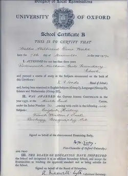 - ^ School Certificate at History Learning Site. Retrieved 6 September 2012