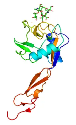 - ^ a b PDB: 1G1R; Somers WS, Tang J, Shaw GD, Camphausen RT (October 2000). "Insights into the molecular basis of leukocyte tethering and rolling revealed by structures of P- and E-selectin bound to SLe(X) and PSGL-1". Cell. 103 (3): 467–79. doi:10.1016/S0092-8674(00)00138-0. PMID 11081633. S2CID 12719907.