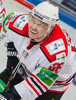 Sergei Peretyagin (born 19 April 1984) is a Russian professional ice hockey defenceman who is currently playing for Kunlun Red Star of the Kontinental Hockey League (KHL). He is in his second stint with the Red Star, having played in their inaugural season in the KHL in 2016–17 before briefly joining HC Ugra.[1]