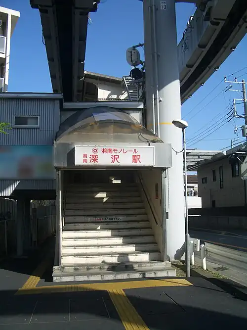 Shōnan-Fukasawa Station (湘南深沢駅, Shōnan-Fukasawa-eki) is a monorail train station on the Shōnan Monorail Enoshima Line located in Kamakura, Kanagawa Prefecture, Japan. It is located 2.6 kilometers from the northern terminus of the Shōnan Monorail Enoshima Line at Ōfuna Station.