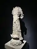 The forerunner of the Shandong Museum, the Yidu Museum, was established by the British Baptist missionary John Sutherland Whitewright in Qingzhou in 1887. The museum moved to Jinan in 1904 and was renamed to Guangzhi Yuan. In 1942, the museum expanded to a building in the compound of the Red Swastika Society on Shangxin Street.[1] When the Shandong Provincial Museum (Chinese: 山东省博物馆; pinyin: Shāndōng Shěng Bówùguǎn) was founded in 1954, its collection of historical artifacts occupied the compound of the Red Swastika Society, whereas the Guangzhi Yuan housed its natural history collection. In August 1991, construction on a new building for the museum started in the south of Jinan, at the intersection of Li Shan Road and Jing Shiyi Road, near the Thousand Buddha Hill.[1] The building was completed in October 1992,[1] its street address is: Number 14 Jing Shiyi Road, Lixia District, Jinan. In December 2007, ground was broken for a new, significantly larger museum located on Yaojia Street in the Lixia District to the southeast of Jinan's city center.[1] This new museum building was opened to the public on November 16, 2010.[1] The official name of the new museum was shortened from "Shandong Provincial Museum" to "Shandong Museum".