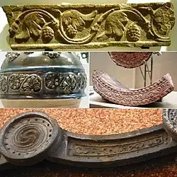 - ^ The transmission of the floral scroll pattern from West to East is presented in the regular exhibition of Ancient Japanese Art, at the Tokyo National Museum.