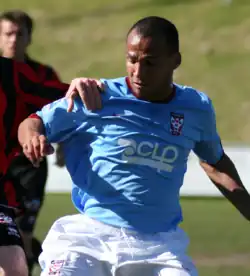 He was involved in a controversy when he wrote a message on the Facebook profile of Wrexham teammate Christian Smith, which regarded Wes Baynes's contract situation at the club, and caused an angry reaction by the fans.[24] Following the completion of his loan spell at Rushden, he was set to join York City on loan.[25] The move was completed on 15 January, when he signed for the rest of the 2008–09 season.[26] He made his debut in a 3–0 victory against Lewes on 17 January as a right midfielder.[27] He featured as a striker as part of a 4-3-3 formation in a 1–1 draw with Altrincham on 27 January.[28] He joined Tamworth on a month's loan on 13 November,[29] making nine appearances before returning to Wrexham in January 2010.[30] On 11 March 2010, he was released from his contract at Wrexham by mutual consent after failing to make a first team appearance for the club all season.[31] He later joined Eastwood Town and made his debut in a 2–1 defeat to Workington.[32]