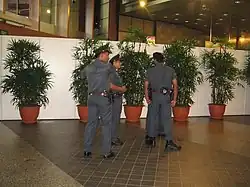 Over 10,000 police officers, including reserve members of the Singaporean national service and officers from the Volunteer Special Constabulary,[10] were deployed at event venues and the Marina Centre area. Officers from the Gurkha Contingent and the Key Installation Protection Unit were deployed to patrol the vicinity and at entrances to barricaded areas.