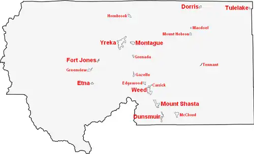 The population ranking of the following table is based on the 2020 census of Siskiyou County.