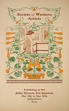 The Society of Western Artists "was organized in 1896 for the purpose of uniting artists in fellowship and of combining their efforts in the advancement of Art. As one of the means to this end the Society gathers together, annually, a collection of representative works, chiefly done in the middle west, and exhibits the collection in various cities."[1]