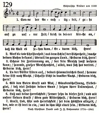 - "Sonne der Gerechtigkeit" (in German). Die Christliche Liederdatenbank. 2017. Retrieved 21 October 2017.
