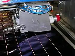 In ultrasonic machining, welding and mixing, a sonotrode is a tool that creates ultrasonic vibrations and applies this vibrational energy to a gas, liquid, solid or tissue.