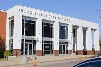The Soulsville Charter School (TSCS) is a charter school in South Memphis, Tennessee. It is located at 1115 College Street. The entire 2014 graduating class was accepted at 4-year colleges. Soulsville Charter School serves about 600 students in grades 6–12.[3] It opened in 2005. The official nickname is The Soulsville Revolution, the school's teams compete as the Tornadoes, and the school colors are Royal Purple and Silver.