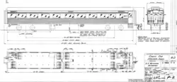 The car was constructed using the side frames as the primary load-carrying system, with formed steel channels forming the body sides between the window frames; the sum framework of each vehicle comprises well over four hundred parts.[2] Rockwool insulation was packed into the side voids, sewn in place with copper wire, and the body was finished with fluted aluminium strips (later stainless steel) riveted or screwed in place, giving the classic look of the series.