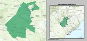 South Carolina's 2nd congressional district is in central and southwestern South Carolina. The district spans from Columbia to the South Carolina side of the Augusta, Georgia metropolitan area.