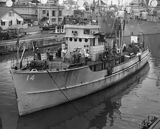 Harbor Boat Building Company built two Yard patrol boats, YP 639 and YP-640.[14][15][16] The ship housed three officers and twenty men. The boats had a length of 128 feet, beam of 30 feet, draft of 14 feet. Armed with three 20mm AA gun mounts and power with a single propeller with 560shp.[17]