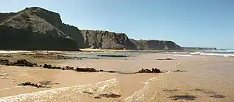 Southwest Alentejo and Vicentine Coast Natural Park (PNSACV) is a natural park located in southwest Portugal. It occupies an area of 895.7 km2 (345.8 sq mi) (605.8 km2 (233.9 sq mi) on land and 289.9 km2 (111.9 sq mi) at sea) and is one of the last strongholds of the wild European coast.[3] It has one of the highest levels of biodiversity in the country with over 12 endemic species of plant[4] and several bird nesting sites.