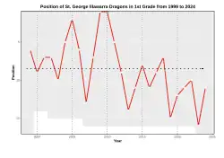 Chart of yearly table positions for St. George Illawarra Dragons in First Grade First Grade NRL