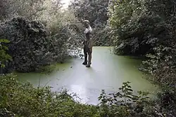 Among the natural attractions of the parish is a feature known as the Devil's Hole[12] (French: Lé Creux du Vis), a blowhole in the cliffs of the coast. The descent from the car park to the Devil's Hole is a popular tourist attraction, with the walk taking approximately ten minutes. The upper part of the path is surfaced, and the lower part, once quite dangerous in parts, now has wooden steps and handrails, with much of the access having been improved by a working party from the Royal Engineers Corps of the British Army. In Victorian times it was possible to descend into the hole itself at low tide, but this is no longer possible. However, the access path ends at a large specially constructed viewing platform. The origin of the name is disputed. Creux refers to a chasm within a cliff-face. It is possible that du Vis was corrupted into an anglicised 'Devil'.[13] It may also get its named from the statue of the devil, as it is unknown whether that predates the modern name. Following a shipwreck in 1851, when the ship's figurehead washed up in the Devil's Hole, a statue of a devil adapted from the figurehead was set up above the Hole.[14] This wooden statue was replaced by a succession of modern versions in the 20th century.