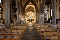 Early 20th-century work to the church includes the Rood screen (designed by George Frederick Bodley), the English Altar and altar rails (designed by the Bromsgrove Guild), and restoration work to the Trinity Chapel (instituted by C. E. Mallows). Later in the 20th century, from the mid-1970s to 1982, the church was restored and otherwise improved. In 2014 new work was completed on a Narthex at the west end of the church.[5]
