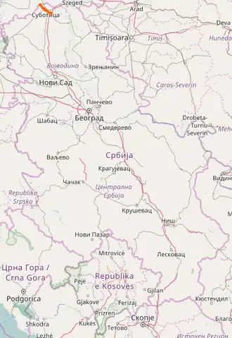 | From | Hungary – Serbia border at Kelebija | |||