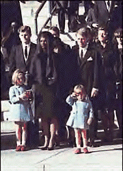 ![]() Family members of John F. Kennedy, including former First Lady Jacqueline Kennedy, descending the steps of the United States Capitol after viewing his lying in state. | |