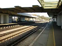 A major incident occurred on 4 July 1971 when a freight train derailed on the points at the London end of platforms 3 & 4. Unaware of the incident, the driver continued through the station with the result that two derailed wagons eventually toppled over south of the platforms and obstructed the down fast through line. At the same time, a down express passed through the station and collided with the derailed wagons at a speed that caused the front of the express to derail and topple over. The leading coach finally came to rest as it struck the road bridge that passes under the line south of the station. There were no fatalities and the cause of the initial derailment was eventually attributed to overloading of some of the ballast wagons in the freight train which resulted in buffer locking when the train initially left Clapham Junction yard that day.[9]