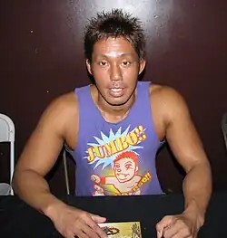 After a brief stay in the Michinoku Pro Wrestling dojo, he entered Ultimo Dragon's dojo in Mexico. He debuted in 1998 as a third-term student.[3] He and Yasushi Kanda formed a tag team there, and they found success, winning the IWRG Intercontinental Tag Team Championship.[4] They would hold these titles upon their arrival in Toryumon.
