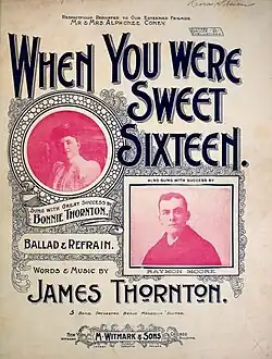 - "When You Were Sweet Sixteen" - Written by James Thornton, published 1898, #3 hit for Harry McDonough in 1901