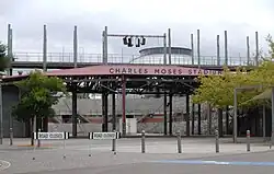 Charles Moses Stadium is a U-shaped outdoor stadium. Features include tiered seating with a capacity of 3000, a video screen, PA system and corporate boxes.[ 5] It is home to the Royal Easter Show's wood chopping events. It is named in honour of Charles Moses , the general manager of the Australian Broadcasting Commission from 1935 to 1965.[ 6]