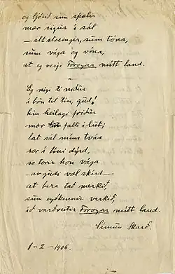 | Lyrics | Símun av Skarði, 1 February 1906 |
