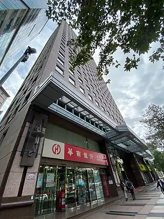 Taipei Century Plaza (Chinese: 世紀金融廣場大樓; pinyin: Shìjì jīnróng guǎngchǎng dàlóu), is a skyscraper office building located in Xinyi District, Taipei, Taiwan. The height of the building is 107 m (351 ft) and it comprises 28 floors above ground as well as five basement levels.[1][2] The building was completed in 1997 and is located next to Hsin Ji Building, which was also completed in the same year.[3][4][5] The ground floor of the building houses the Shimao branch of Hua Nan Bank.