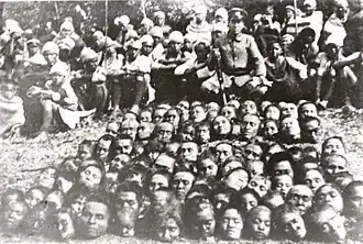As the Qing consolidated their power over the plains and struggled to enter the mountains in the late 19th century, the terms Pingpu (平埔族; Píngpǔzú; 'Plains peoples') and Gaoshan (高山族; Gāoshānzú; 'High Mountain peoples') were used interchangeably with the epithets "civilized" and "uncivilized".[20] During Japanese rule (1895–1945), anthropologists from Japan maintained the binary classification. In 1900 they incorporated it into their own colonial project by employing the term Peipo (平埔) for the "civilized tribes", and creating a category of "recognized tribes" for the indigenous who had formerly been called "uncivilized". The Musha Incident of 1930 led to many changes in indigenous policy, and the Japanese government began referring to them as Takasago people (高砂族, Takasago-zoku).[21]
