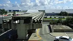 An automated monorail system also once connected the main terminal on Level 5 to the long-term parking garage,[20] stopping at each elevator bank in both buildings. It was installed in 1991 when the long-term parking garage was built.[10] It used six Bombardier UM III vehicles (known today as the Innovia Monorail 100), which are also used on the Jacksonville Skyway.[1]