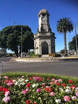 The Taradale clock tower was built in 1923 as a Taradale and District World War 1 Memorial. The tower is situated where several roads converge and is a prominent landmark. Designed by John Ellis and built by Mr A. B. Davis, the hexagonal tower is 15 metres tall. The tower was unveiled in 1923 by Admiral Viscount Jellicoe, Governor General of New Zealand. Following the 1931 earthquake, the tower developed a lean of two feet (0.61 metres) but was able to be restored by John Ellis. In 1997 murals depicting the three armed services were painted by Brenda Morrell.