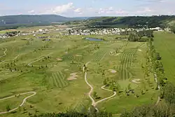 Despite its small population base and its proximity to a much larger urban centre Taylor has an ice arena, a curling rink, indoor swimming pool, irrigated baseball diamonds, a motocross track, and an 18-hole championship golf course. The District Ice Centre opened in 1993 and consists of an ice hockey rink and leisure skating rink, both of which are used for roller hockey, trade shows and conventions in the summer. The four sheet curling rink is used as a swimming pool in the summer. The District's newest facility, built in 2001, is a CND $1.2 million multi-purpose community hall and gymnasium, which now features a rehabilitation studio.[7] The 320-acre (1.3 km2), 18-hole Lone Wolf Golf Course opened in 1995 at a cost of $3.5 million and is managed by the District. Meandering around the course, by agricultural fields, and a community forest, is the 4.2 km ParticipACTION Trail. In the winter the golf course and its trails are used for cross-country skiing, snowshoeing and other winter activities.