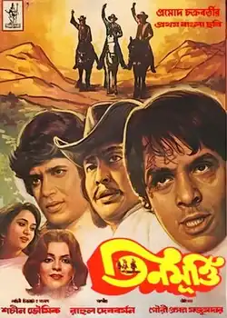 Teen Murti (in Bengali; transl. The Three Musketeers), also known as Jagir (in Hindi transl. The Estate),[1] is a 1984 Indian bilingual dacoit Western film simultaneously shot in Bengali and Hindi-languages, produced and directed by Pramod Chakravorty in his debut in Bengali cinema, under his banner of Pramod Films. The film stars an ensemble cast of Dharmendra, Mithun Chakraborty, Danny Denzongpa, Zeenat Aman, Shoma Anand, Pran, Amrish Puri and Ranjeet. The film plots three friends unfolding the truth of their past wrongs, which involves a hidden treasure and familial secrets.